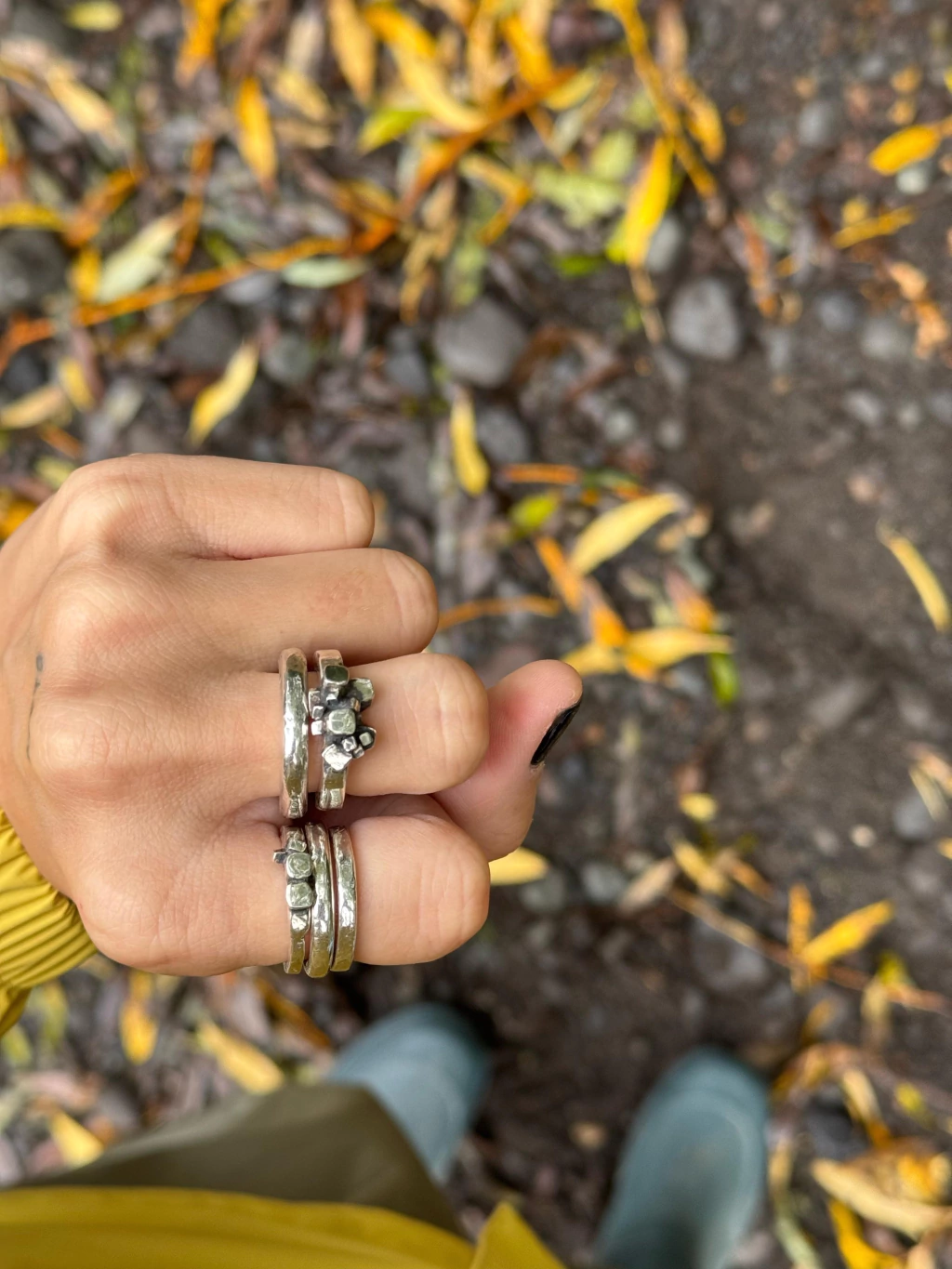 Cuidados com a peça: Retire seus anéis ao manusear produtos quimicos, isso inclui cosméticos, perfumes, sabonetes. Eles alteram o brilho dos metais.